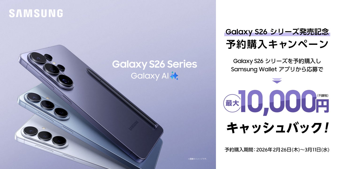 本日よりSamsung Galaxy S26シリーズ発売記念 予約購入キャンペーン※とSamsung Galaxy S26シリーズ発売記念 購入キャンペーン※を開催いたします。