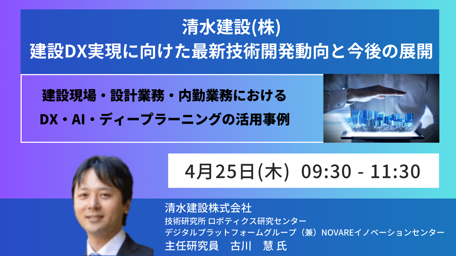 【JPIセミナー】清水建設(株)「建設DX実現に向けた最新技術開発動向と今後の展開」4月25日(木)開催