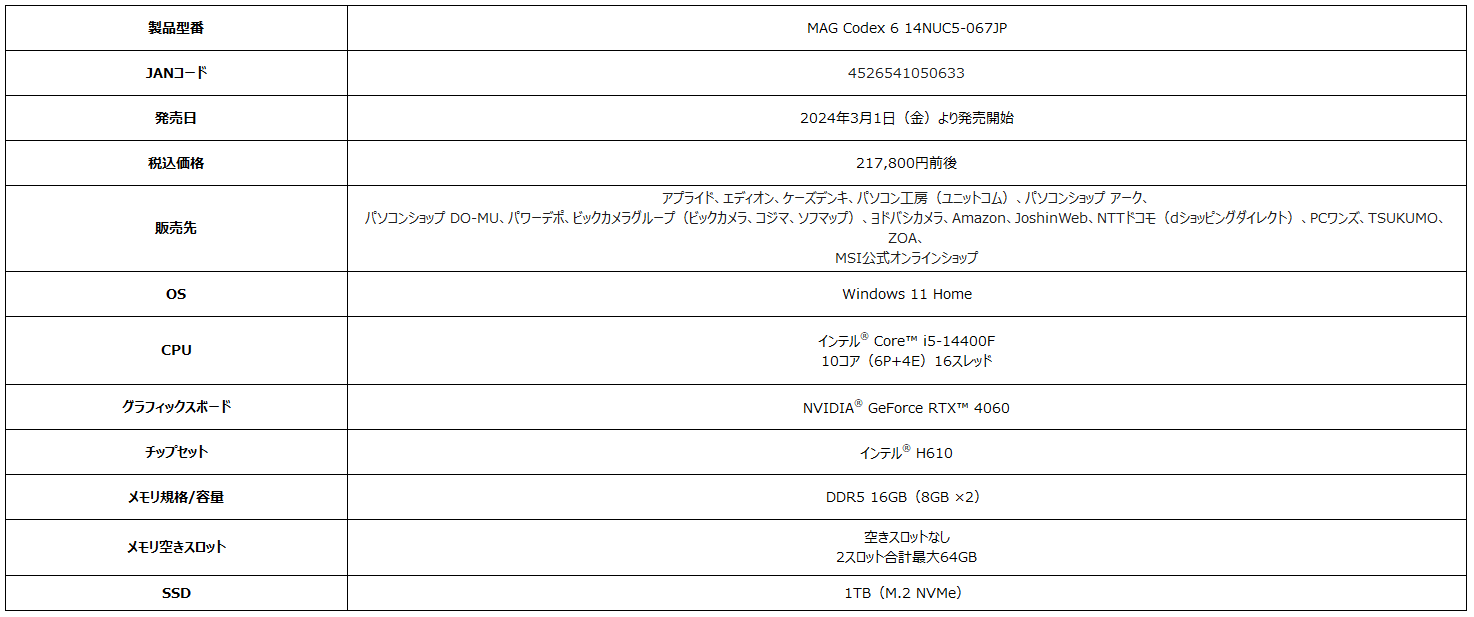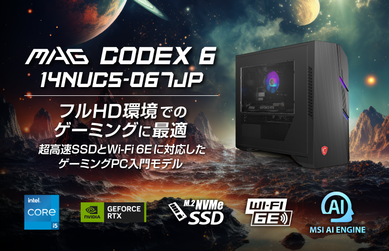 最新の第14世代 インテル® Core™ i5、 GeForce RTX™ 4060搭載 ゲーミングPC入門に最適「MAG Codex 6 14NUC5-067JP」発売