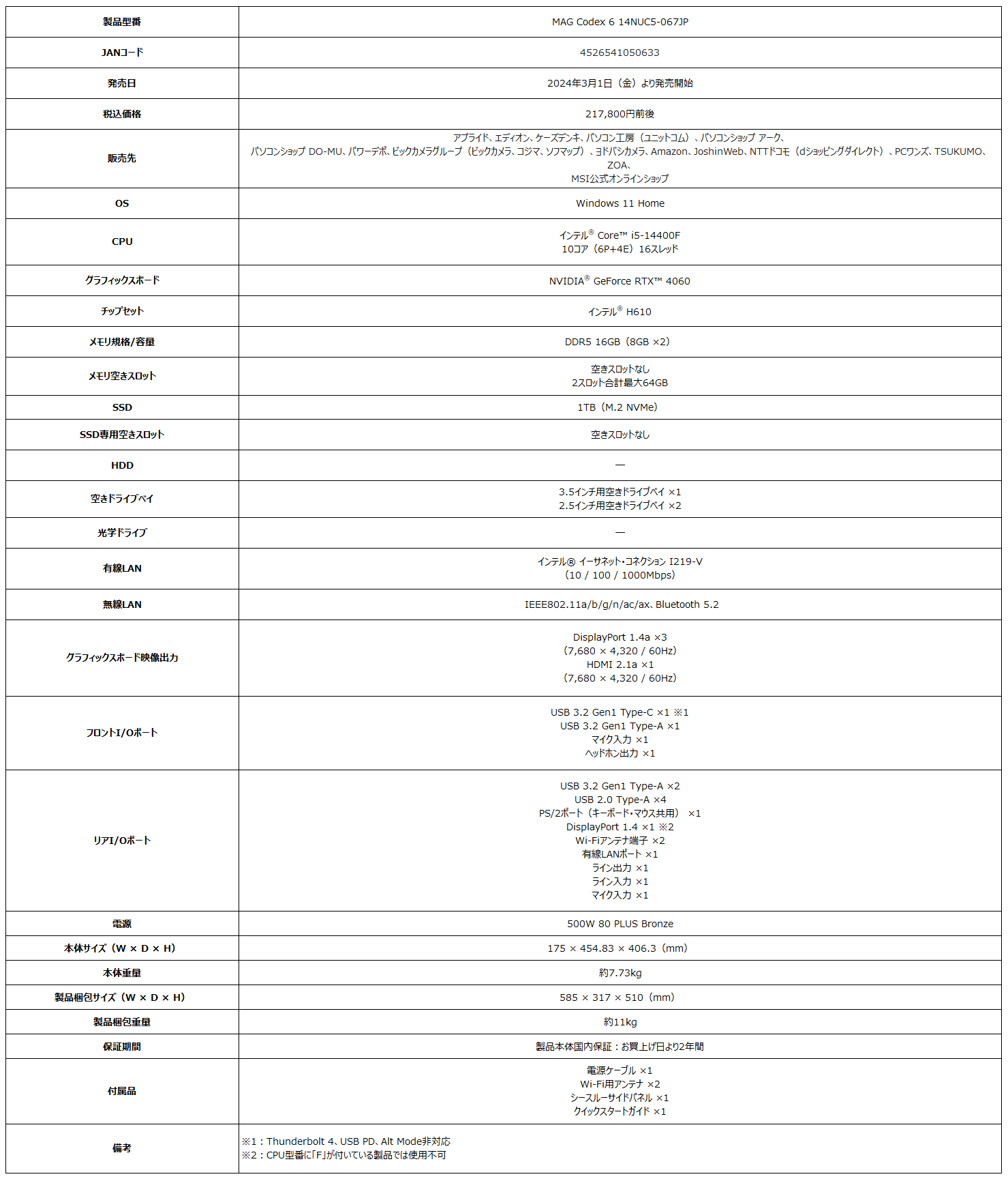 ■ MAG Codex 6 14NUC5-067JP製品ページ