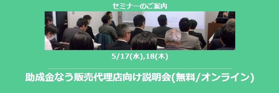5/17(水),18(木)「助成金なう販売代理店説明会」を開催します(無料/オンライン)