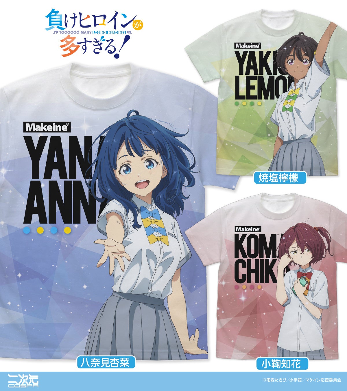 『負けヒロインが多すぎる!』より、「八奈見杏菜」をはじめ、“マケイン”たちのフルグラフィックTシャツとパスケースが二次元コスパから登場。
