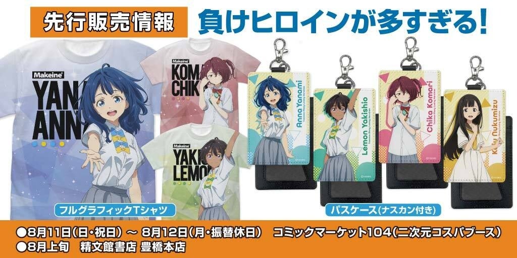 “マケイン”の輝きをこの一枚に!『負けヒロインが多すぎる!』「八奈見杏菜」たちのフルグラフィックTシャツとパスケースが登場!コミケなどで先行販売も!【株式会社コスパ】