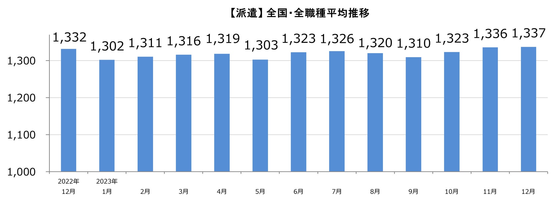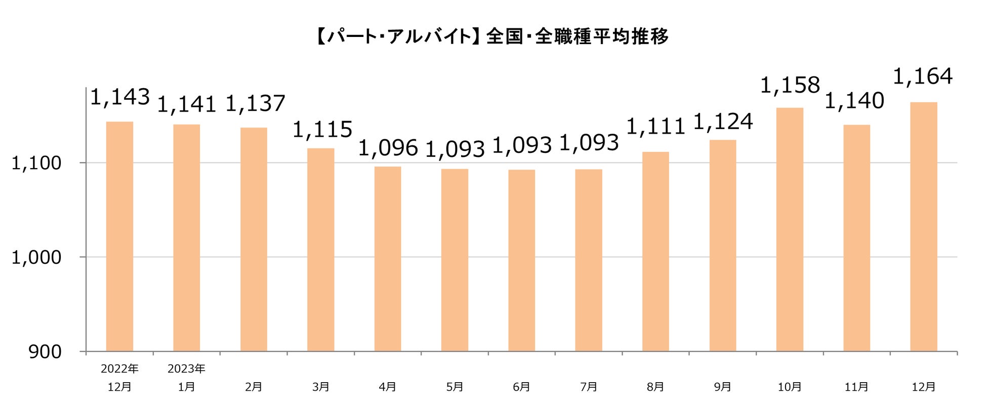 2023年12月しゅふ求人の平均時給パート・アルバイト:『1,164円』、派遣:『1,337円』/年末の求職者の就活鈍化に伴い、求人を一時的に止める企業の動きが影響か