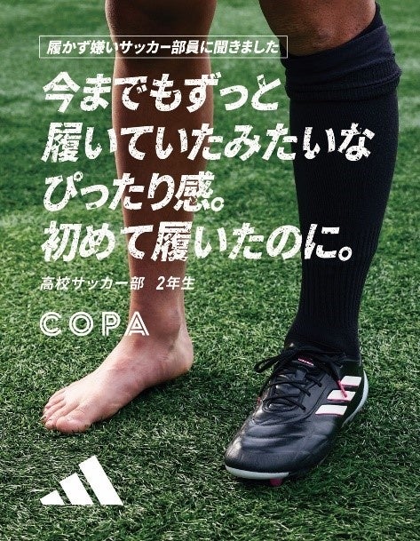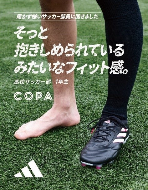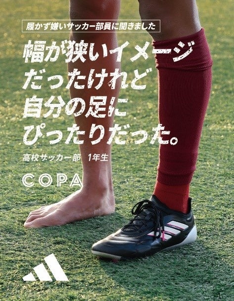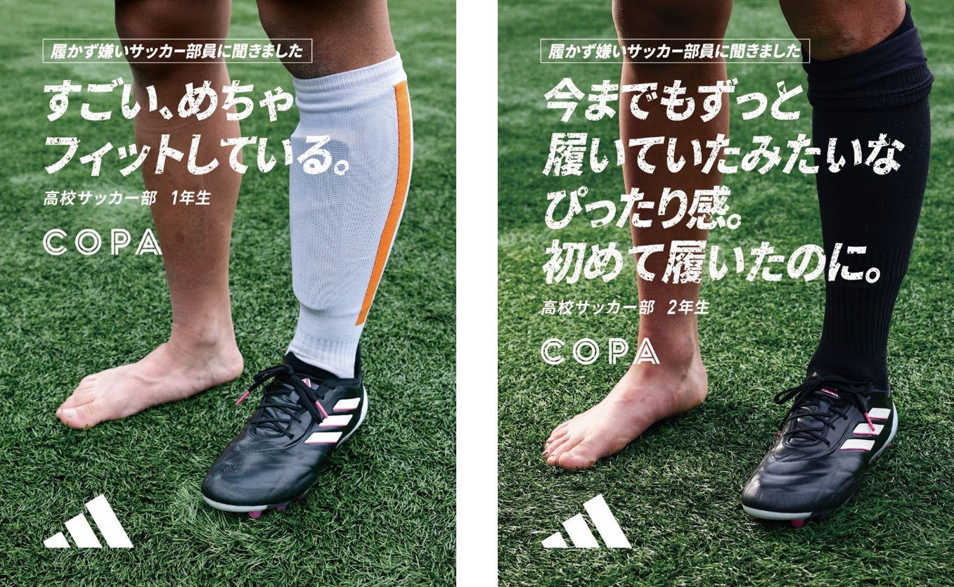 アディダス ジャパン株式会社(本社:東京都港区、代表取締役:ステイン・ヴァンデヴォースト)は、総勢17校645名の全国の高校サッカー部員を対象に、サッカースパイク「コパ ピュア」の試履きを実施しました。この取り組みを通して生まれた部活生の声を「#履かず嫌いはもったいない」と題して、JR千駄ヶ谷駅の屋外広告に2023年3月20日(月)より展開いたします。屋外広告では、「履かず嫌いサッカー部員に聞きました」というタイトルの下、実際に試履きをしたサッカー部員のコメントをそのままコピーとして使用し、「コパ ピュア」のフィット感を表現しました。