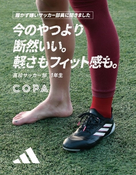広告は7種類を予定しています。実際に試履きをした高校サッカー部員の声を元に「履かず嫌いサッカー部員に聞きました」というタイトルを添えて、『コパ』のフィット感を表現しています。