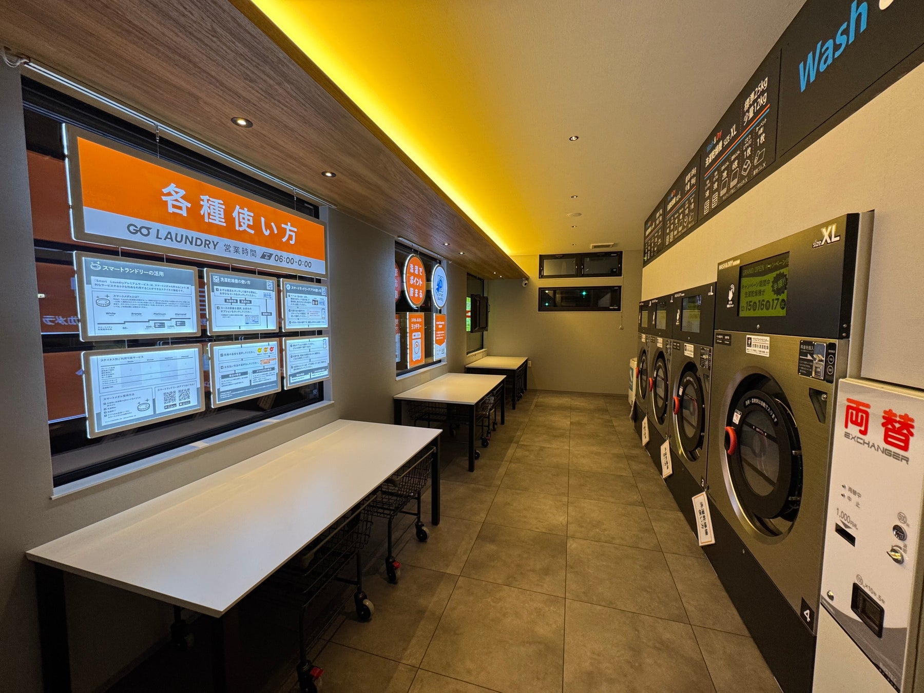 GOランドリー 安原店では、タッチパネル付き洗濯乾燥機や多言語に対応した操作パネル、キャッシュレス決済が出来ます。