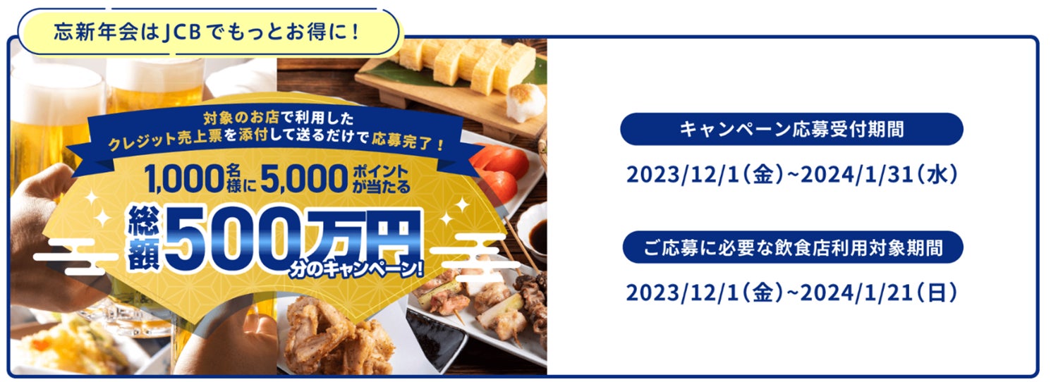 今年は新型コロナウイルス感染症の5類移行後初の忘新年会シーズンとなり、JCBとぐるなびは、繁忙期を迎える飲食店を応援したいという思いが一致し、より多くの方に飲食店をご利用いただけるよう今回のキャンペーンを実現しました。