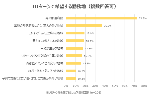 (4) UIターンで希望する勤務地は「出身の都道府県」が最多。次いで「出身の都道府県に近く、求人の多い地域」