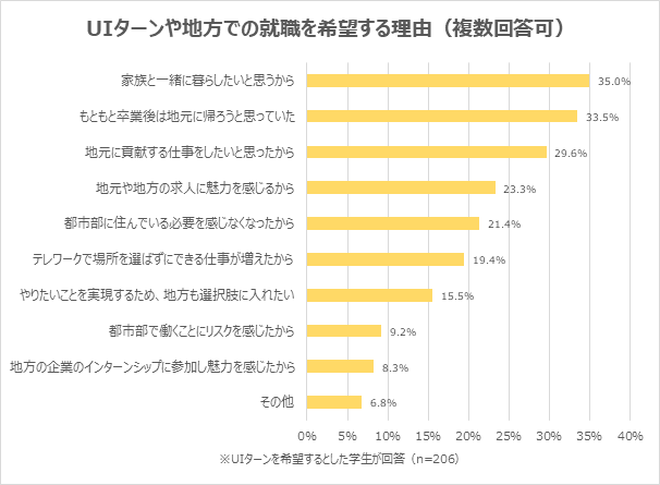 UIターンを希望する学生が約4割。コロナ初期より17.4ポイント増加。「家族の近くに住みたい」「人との繋がりの大切さを感じ、地元に貢献したいという想いが強くなった」の声/2023年卒対象アンケート