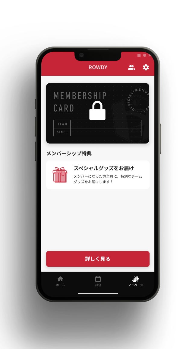 まずは我々のチームの目指す所、 そして活躍する姿、頑張る姿を結果を通して知って頂きたいと思っております。 週末に、そう言えばROWDYの試合今日だよな? そんな時に速報で結果を確認して頂いたり、 あの選手の事応援したいけど、何か情報ないかな? そこは選手紹介を見れば、 と携帯のアプリをダウンロードすれば、チームの情報から全てわかる。 そんな所に期待を寄せております。
