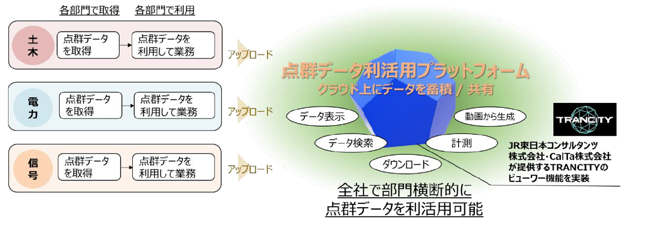 部門ごとに取得した点群データを集約し、全社横断的な相互利用を目的として点群データ利活用プラットフォームを2024年7月から運用開始しました。点群データのさらなる利活用により、設計・施工のDX推進を後押しします。