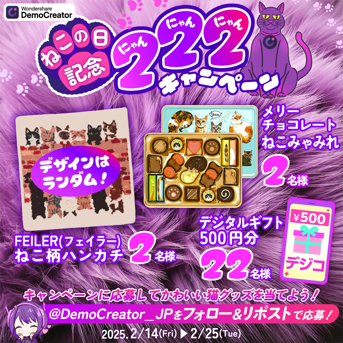 【猫好き大集合】公式Xで猫の日記念「222」キャンペーンを実施!|Wondershare DemoCreator(デモクリエイター)