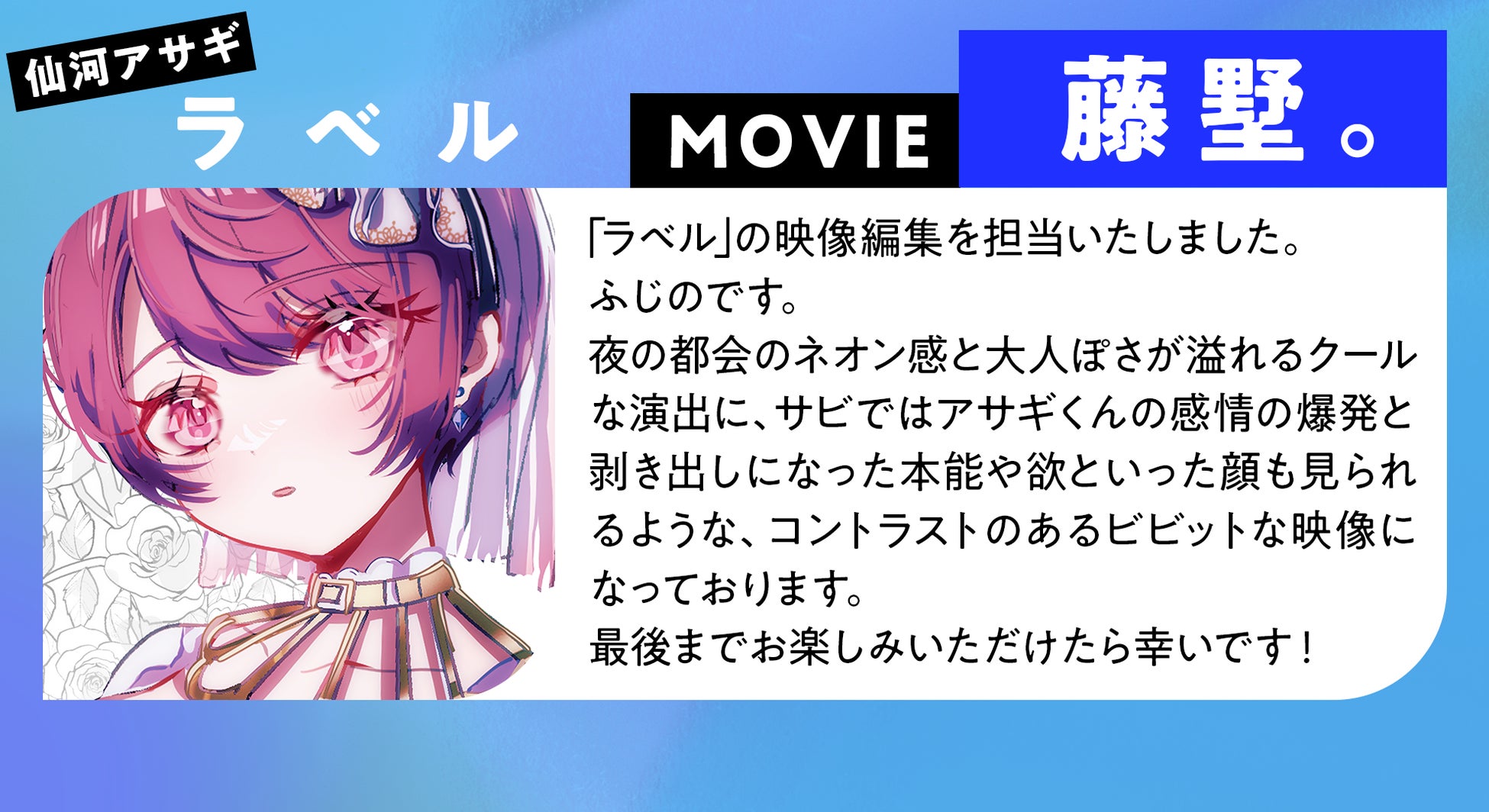 飽きさせない演出が巧みで、ボカロP・内緒のピアスをはじめ、数々のクリエイターのミュージックビデオを手掛けている。