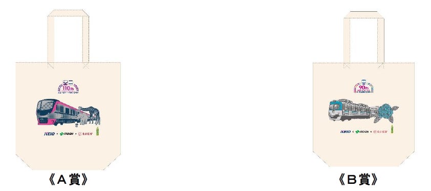 「オリジナルトートバッグ」はA賞(京王電鉄110周年記念オリジナルトートバッグ)、B賞(井の頭線90周年記念オリジナルトートバッグ)の2種類あり、当選者数は各55名様です。