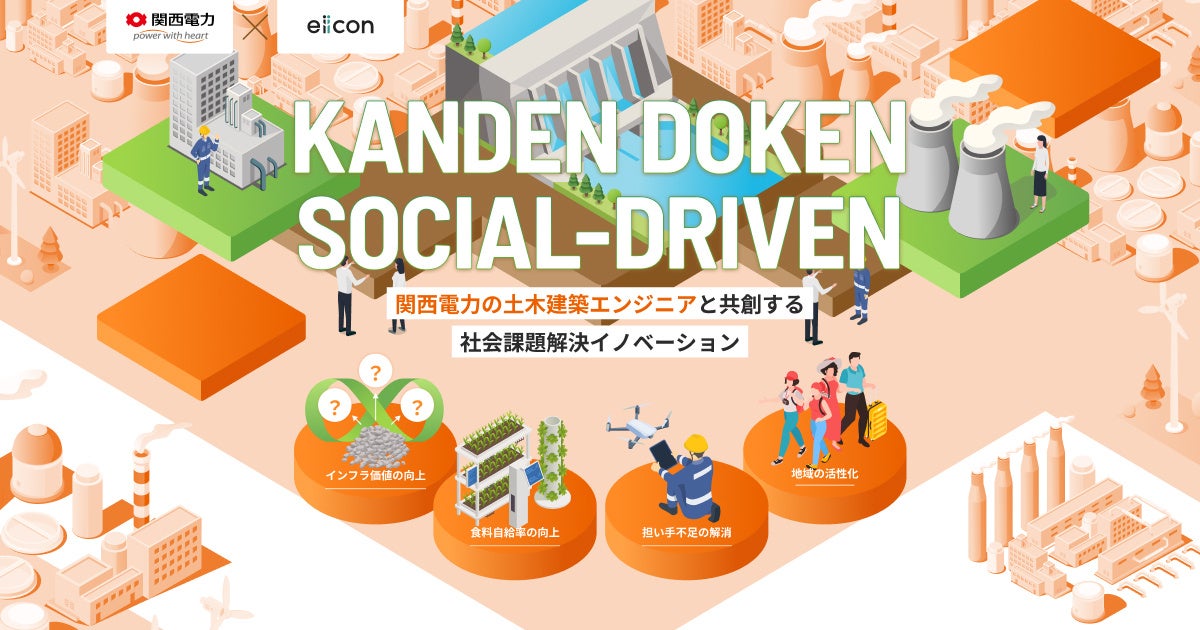 日本最大級のオープンイノベーションプラットフォーム「AUBA(アウバ)」を運営する株式会社eiicon(エイコン 本社所在地:港区虎ノ門、代表取締役社長:中村 亜由子、以下 eiicon)は、2026年4月16日、関西電力株式会社(本店所在地:大阪市北区中之島、代表執行役社長:森望、以下 関西電力)土木建築部門が主催する、共創による社会課題解決イノベーションプログラム『KANDEN DOKEN SOCIAL-DRIVEN(カンデン ドケン ソーシャル-ドリブン 以下、本プログラム)』において、共創パートナー採択企業3社が決定したことをお知らせします。