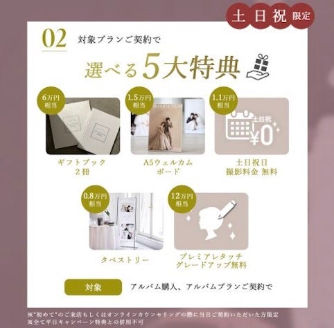 アルバムプランの契約で選べる5大特典!下記より1つ