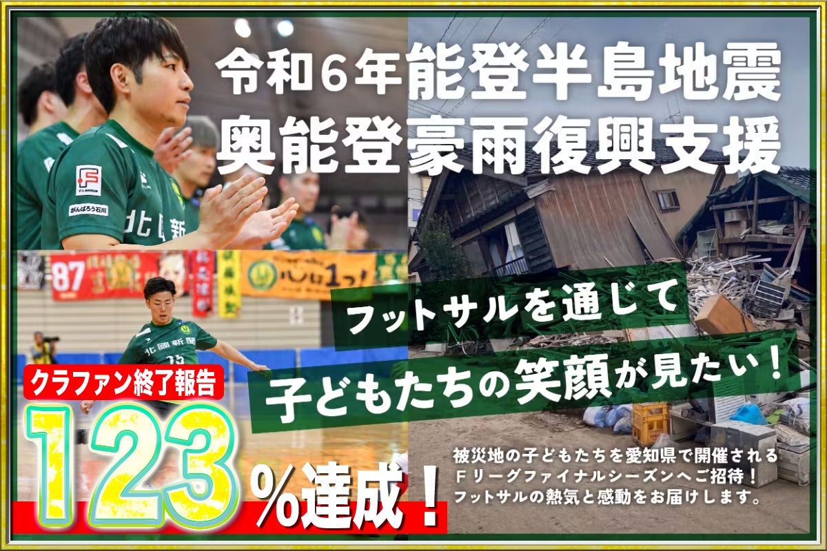 「フットサルを通じて子どもたちの笑顔が見たい」をテーマに 令和6年能登半島地震・奥能登豪雨復興支援のクラウドファンディングが始動。