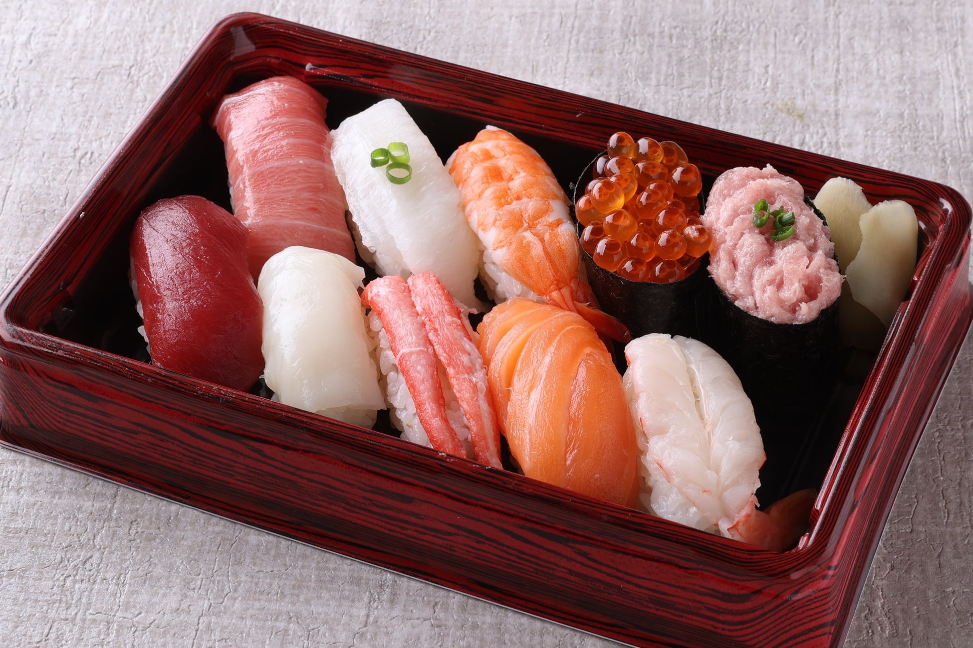 10貫〈中とろ・いくら・本鮪赤身・紅ずわい・えんがわ・サーモン・ねぎとろ・赤えび・いか・海老〉