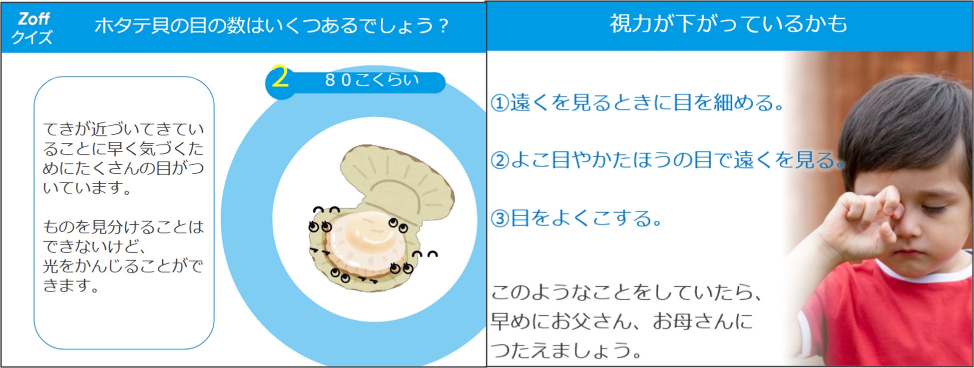 今後もZoffは、子どもたちが日常生活の中で、目の健康やデジタルデバイスの適切な使い方、紫外線対策について考えるきっかけとなる取り組みを実施していきたいと考えております。
