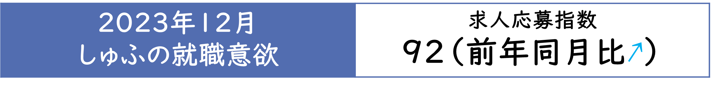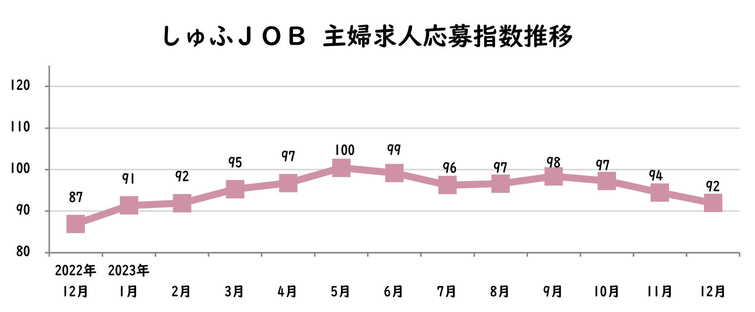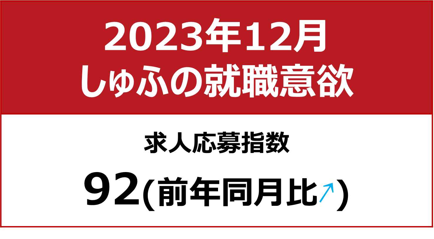 【しゅふの就職意欲調査 2023年12月】しゅふ求人の応募指数92(前年同月比+5)/しゅふの労働意欲上昇続く