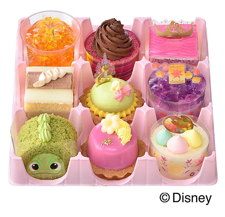 憧れのプリンセス「ラプンツェル」が登場する、ディズニーの物語『塔の上のラプンツェル』の世界観を9種のプチケーキに表現。
