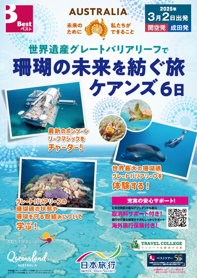 株式会社日本旅行(本社:東京都中央区、代表取締役社長:小谷野悦光)は、オーストラリア政府観光局・クイーンズランド州政府観光局・日本旅行業協会が共同で行う、グレートバリアリーフの珊瑚再生SDGsプログラムと連携した海外ツアー「オーストラリア 珊瑚の未来を紡ぐ旅ケアンズ6日」を発売します。