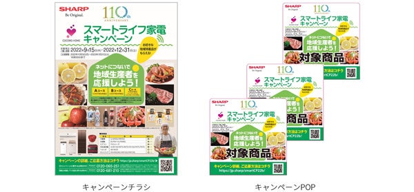 シャープは、おかげさまで本日9月15日に創業110周年を迎えました。このたび、創業110周年に至るまでの皆様からのご支援に感謝し、対象のスマートライフ家電をご購入の上、Wi-Fiに接続してスマートライフアプリ『COCORO HOME』に機器登録し、ご応募いただいたお客様に、もれなく日本各地の特産品をプレゼントする『スマートライフ家電キャンペーン』を実施します。購入期間は本日から12月31日(土)まで。AIoT対応のプラズマクラスターエアコン、プラズマクラスター冷蔵庫、プラズマクラスター洗濯乾燥機、プラズマクラスター加湿空気清浄機、ウォーターオーブン『ヘルシオ』、水なし自動調理鍋『ヘルシオ ホットクック』が対象商品となります(※1)。