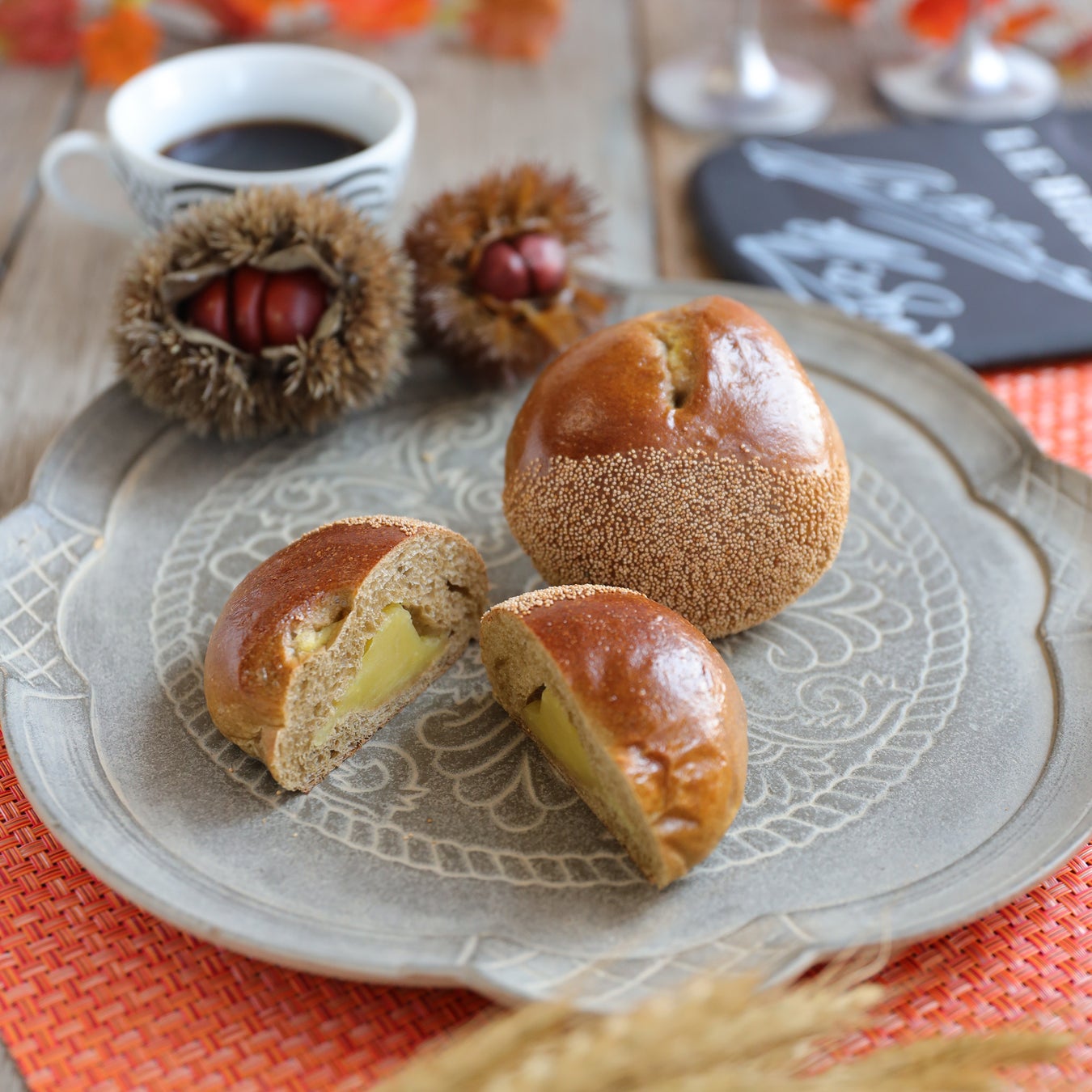 渋皮栗のペーストを混ぜ合わせたガトー・ナンテに、栗の甘露煮を入れてココアのフォンダンをあしらった「ガトーナンテ・シャティーヌ」をはじめ、香り豊かなほうじ茶の生地に栗餡を包んだ、けしの実の食感がアクセントの秋季限定「ほうじ茶栗あんぱん」など期間限定の味わいを多数ご用意しております。