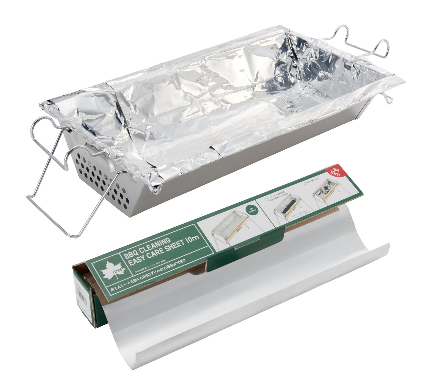 今回ピックアップする「 (お掃除楽ちん)美味しく焼ける 炭焼きグリルプレート(2pcs)」&「eco-logosave (お掃除楽ちん)BBQ深型カバー(2pcs)」は、どちらも”お掃除楽ちん”シリーズに属する、BBQ後のお掃除が簡単になるグリル用アクセサリーで、BBQグリルで美味しく炭焼きを楽しむためのプレートと、面倒なBBQグリルのお掃除を楽にするための火床用カバーです。