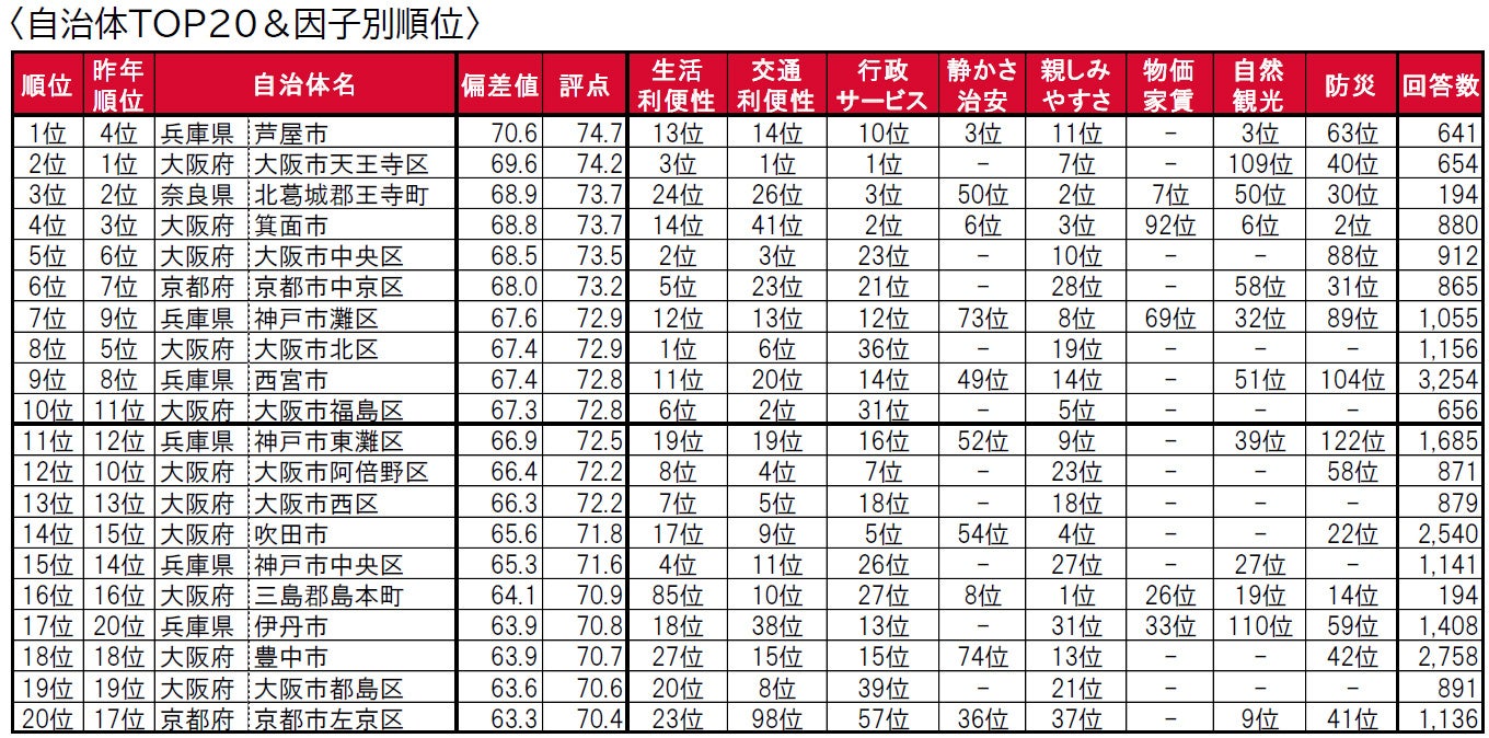 街の住みここちランキング2023<関西版>駅TOP20・自治体TOP20