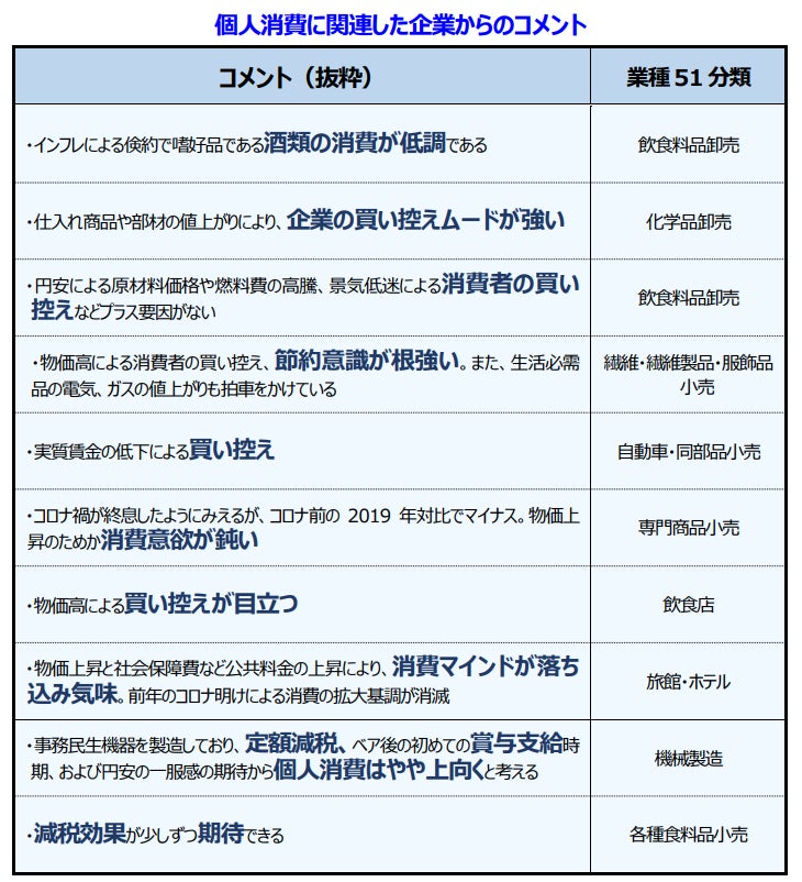 業界別:10業界中6業界で悪化、諸経費の高止まりや購買意欲の低下が響く