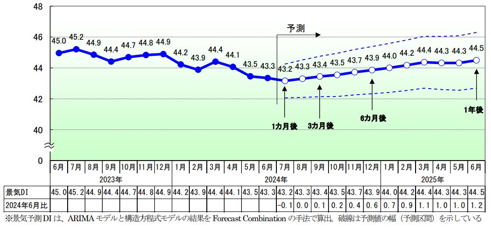 2024年6月の景気DIは前月比0.2ポイント減の43.3となり、3カ月連続で悪化した。国内景気は、円安にともなうコスト負担の高まりや個人消費の落ち込みにより改善が進まなかった。今後の景気は、日本銀行の追加利上げや人手不足の継続などマイナス要因も多く、横ばい傾向で推移するとみられる。