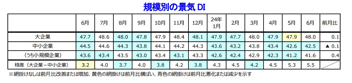 規模別: 「中小企業」が3カ月連続で悪化、宿泊業や飲食店で不調続く