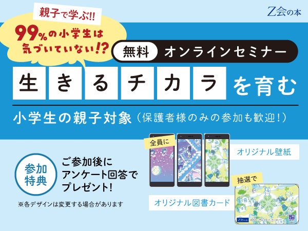 Z会では、小学生の親子を対象に、皆様が「今知りたい」というテーマに沿ったオンラインセミナーを開催します。