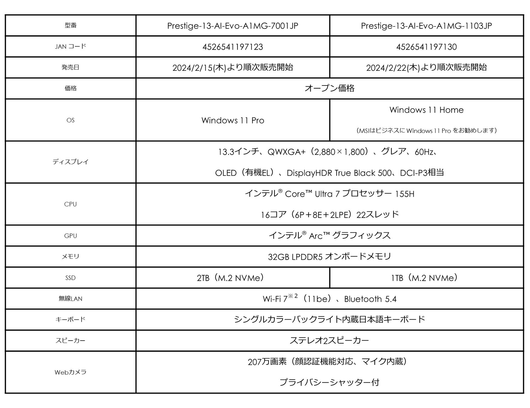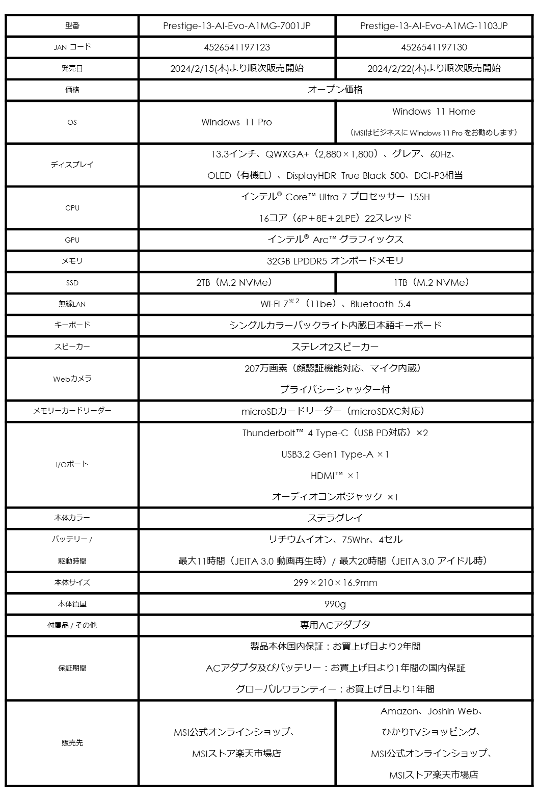 ・Prestige-13-AI-Evo-A1MG-7001JP 販売ページ:https://jpstore.msi.com/shopdetail/000000000632/