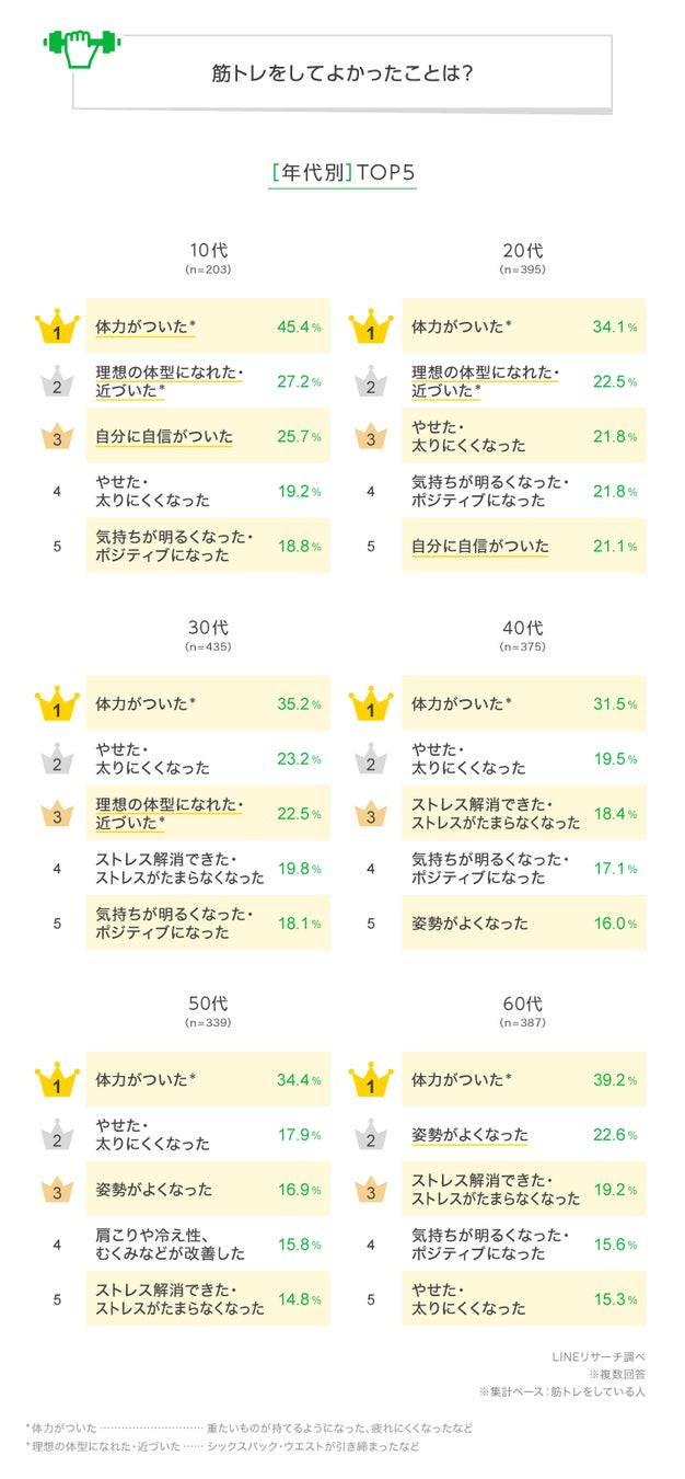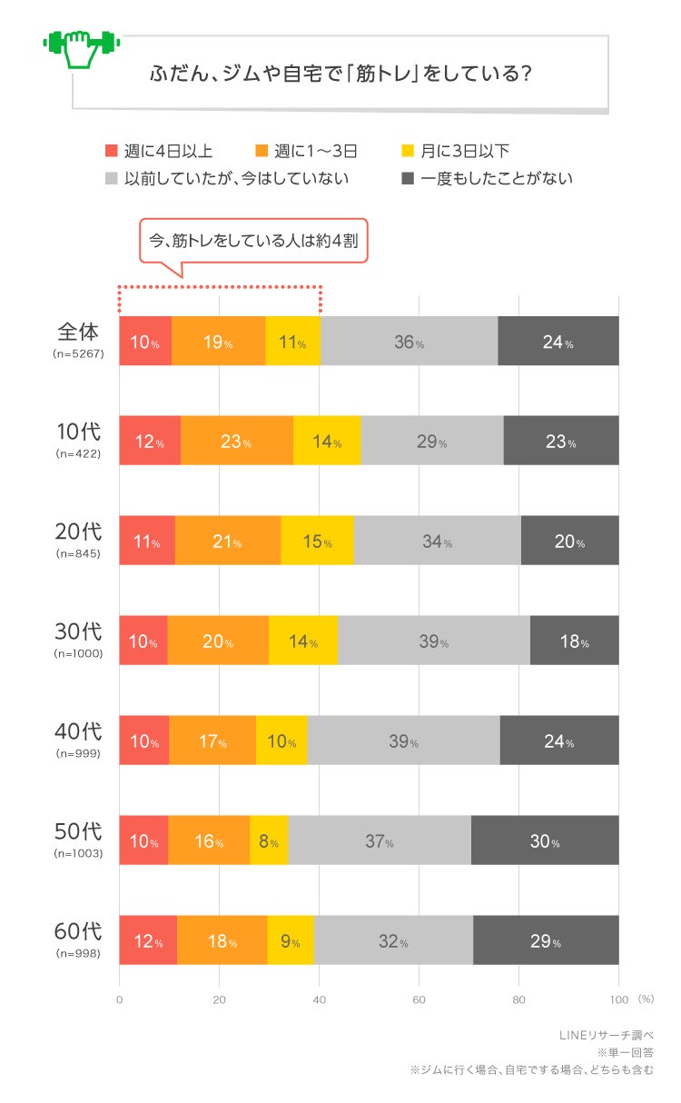 LINEリサーチ、全国の10〜60代の男女を対象に、筋トレに関する調査を実施