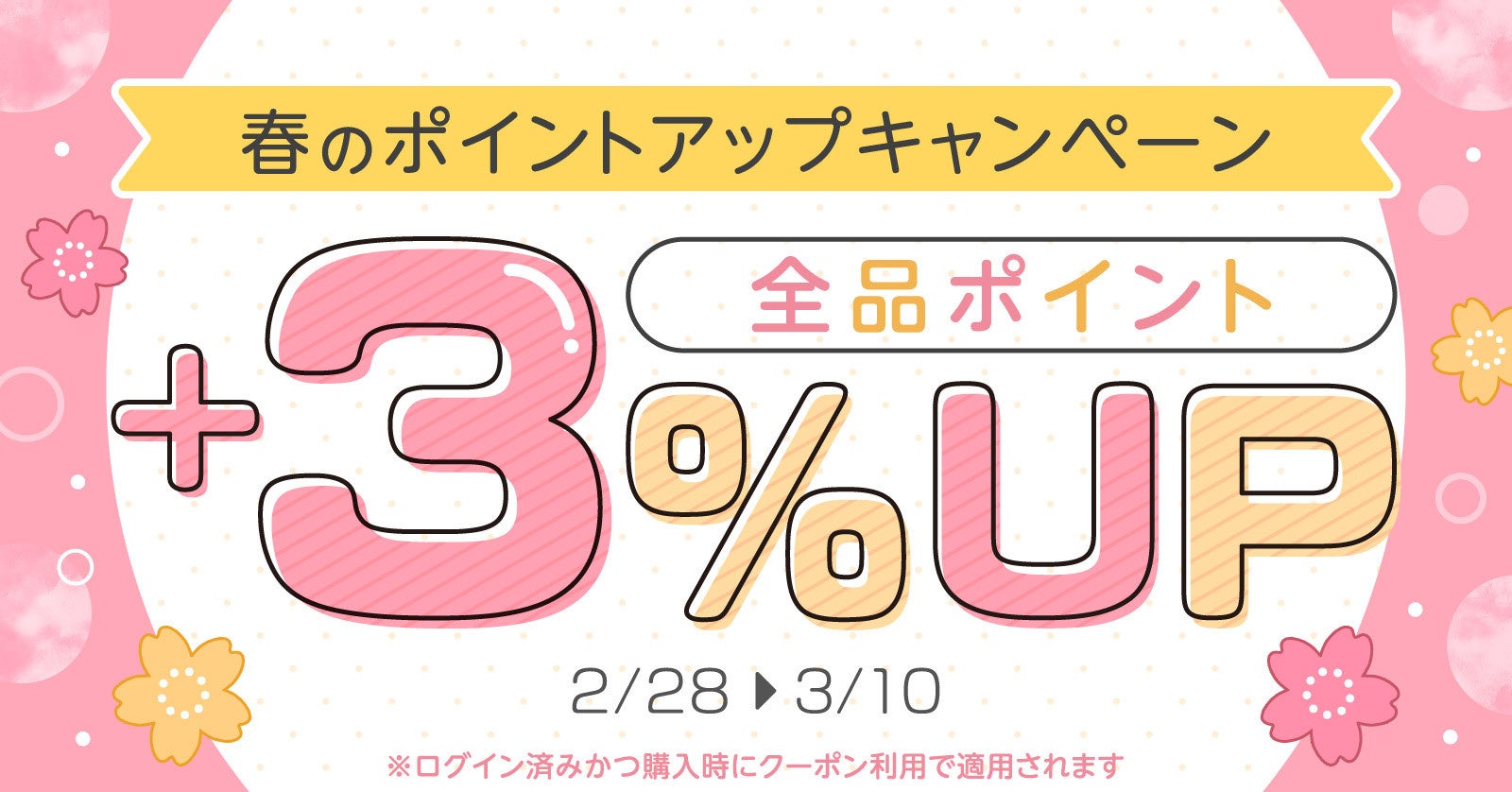 期間限定のポイント還元率+3%UPクーポンを配布いたします。