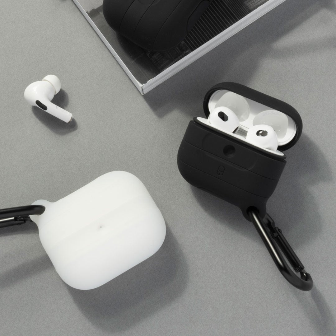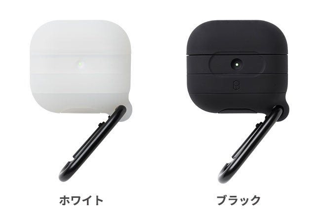 2つ目は、シンプルなデザインに防水性を備えたAirPods3/AirPods Pro専用ケース。カラーは、ツヤのある「ホワイト」とマットな「ブラック」の2種類展開。衝撃に強いシリコン素材でつくられ、外部衝撃から本体を守る安心設計です。