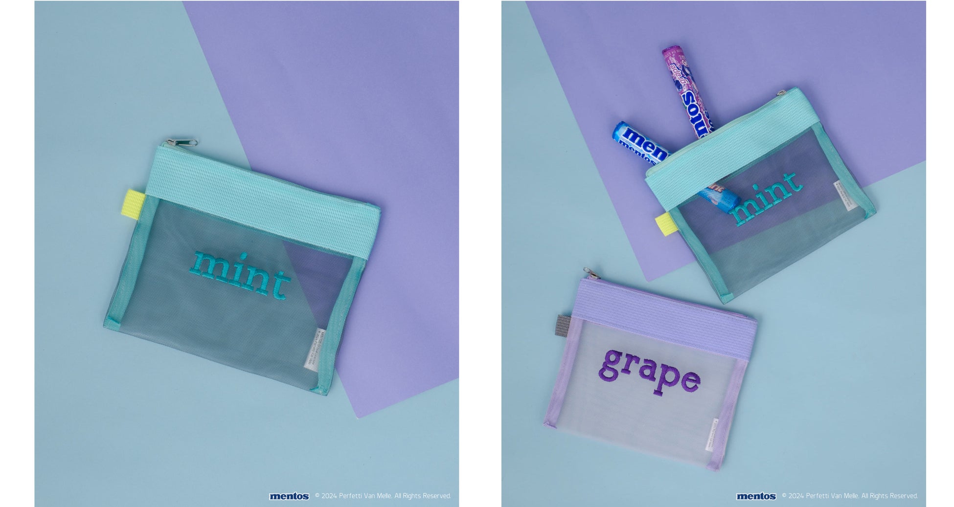 1932年にオランダにあるキャンディメーカーで誕生した「mentos」。不思議な食感とバラエティ豊かなフレーバーで、世界中で愛されているソフトキャンディです。日本では1978年に販売が始まった歴史のあるお菓子。今回、コラボアイテムとして人気フレーバーの「ミント」と「グレープ」のカラーを用いたトートバッグやポーチなど、全13アイテムをラインナップ。夏疲れの季節にぴったりな、爽やかでインパクトのあるアイテムをご用意しました。