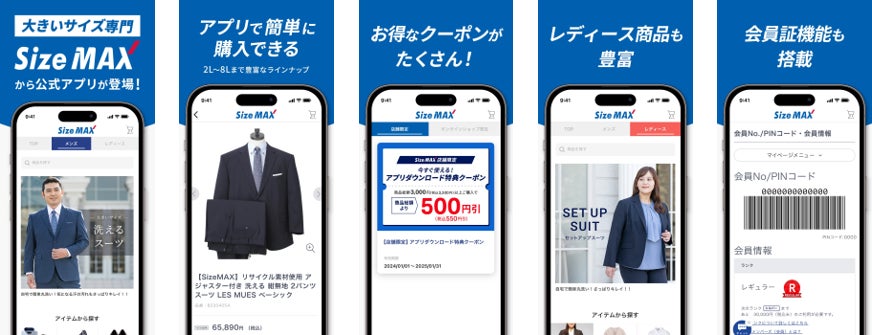 株式会社AOKI(代表取締役社長:森裕隆)は、全国75店舗で展開している大きいサイズに特化した「Size MAX(以下サイズマックス)」より、店頭やオンラインショップでのお買い物がより快適になる専用アプリをリリースいたします。