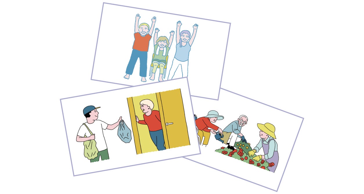 チラシや資料作成に活用できる、サロン活動や体操等のイラストが無料でダウンロードできます。
