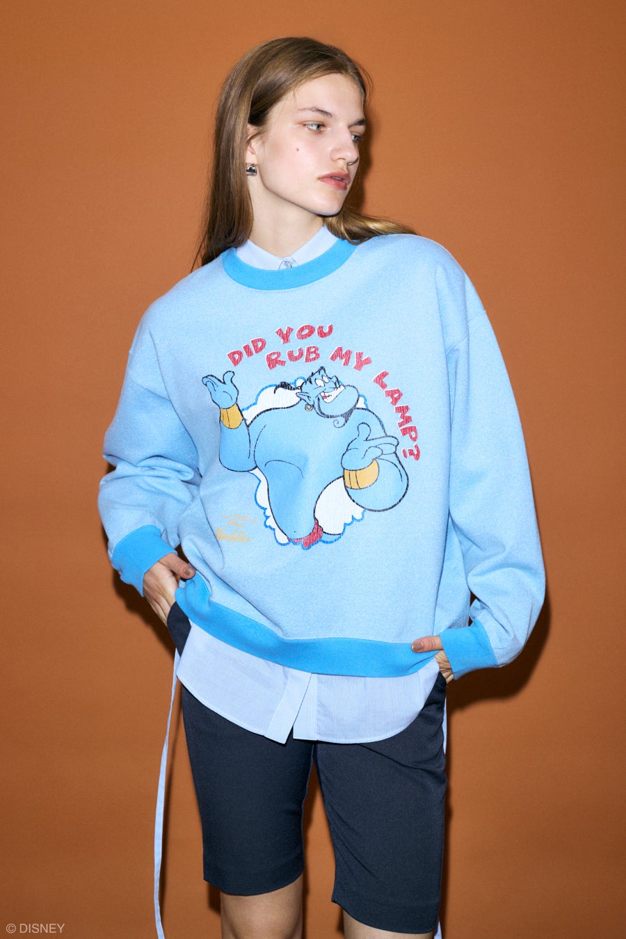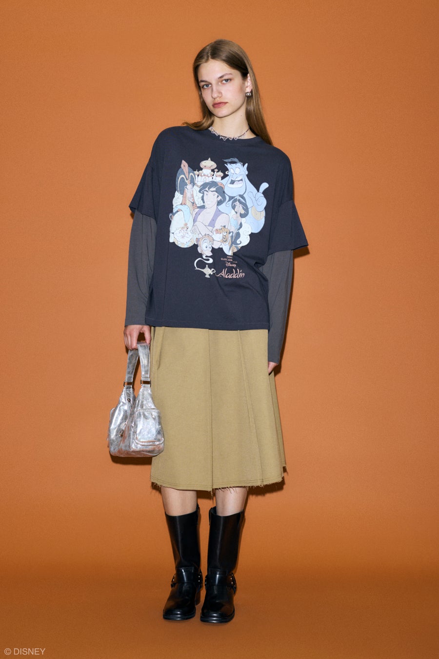 2024 AUTUMN COLLECTIONでは1992年に公開され30年以上にわたり幅広い世代に愛され続けて来たディズニー・アニメーション映画『アラジン』(Aladdin)を起用。アグラバー王国の登場人物勢揃いの貴重なアーカイブアートを用い、バックプリントにもストーリー性を感じさせる身頃と袖を配色にさせたフェイクレイヤードロンT。魔法のランプに閉じ込められていた宇宙最強の魔人ジーニーをアップリケ刺繍でキャッチーに表現したニットトップスや、レトロなデザインに魔法を感じさせるラメ素材のスウェットなど古着屋から掘り出してきた様なヴィンテージ感のあるラインナップ。