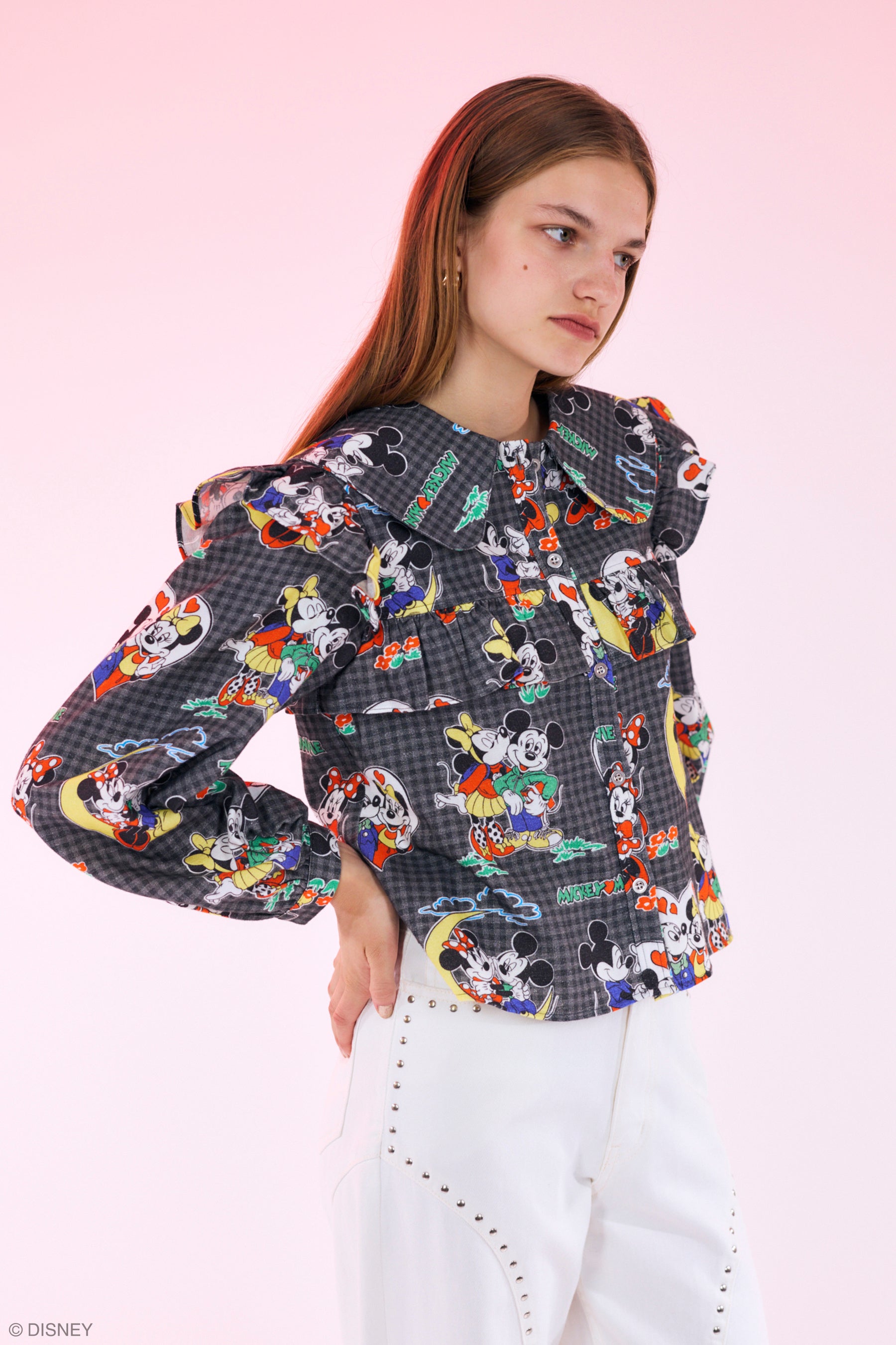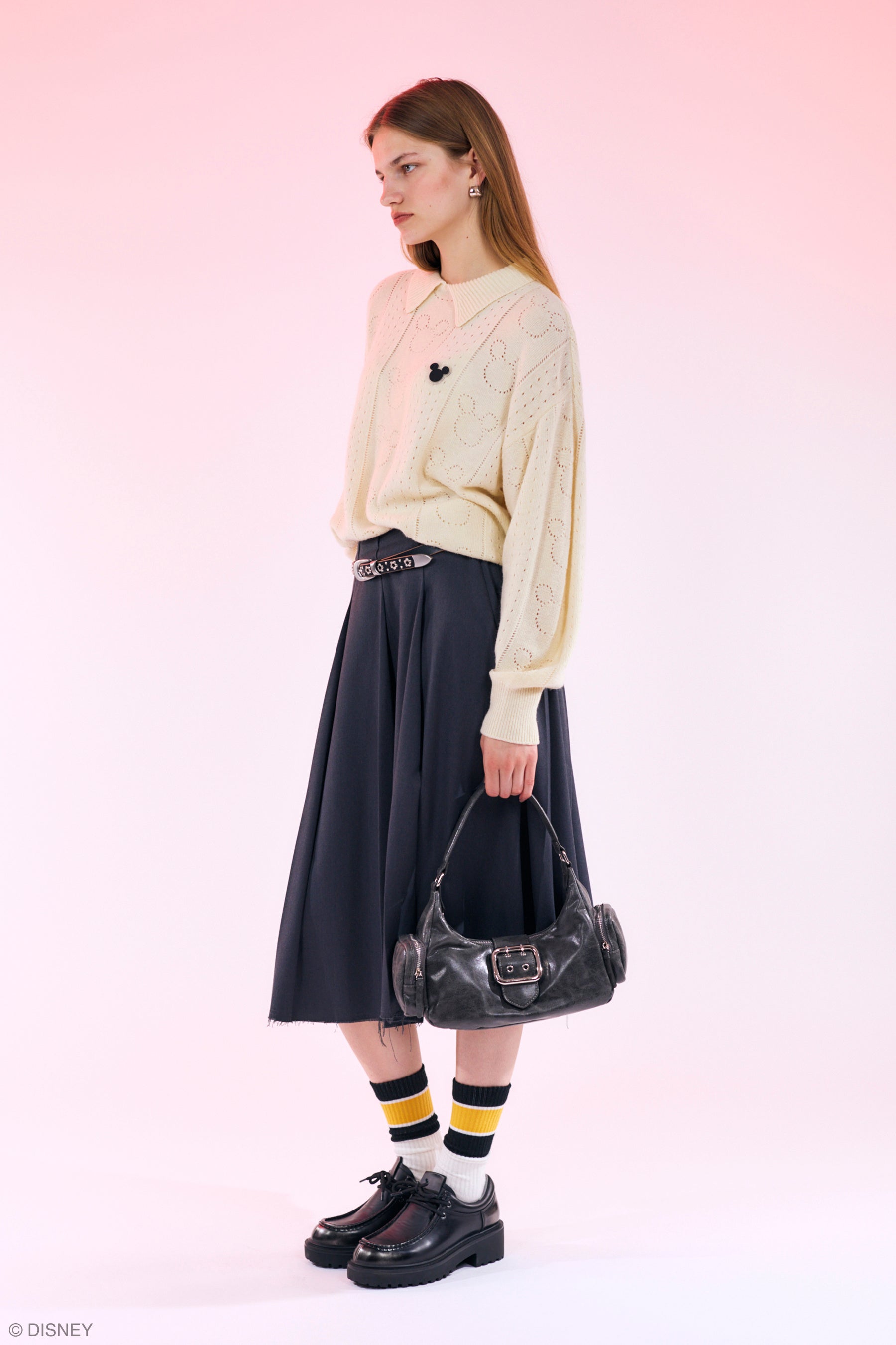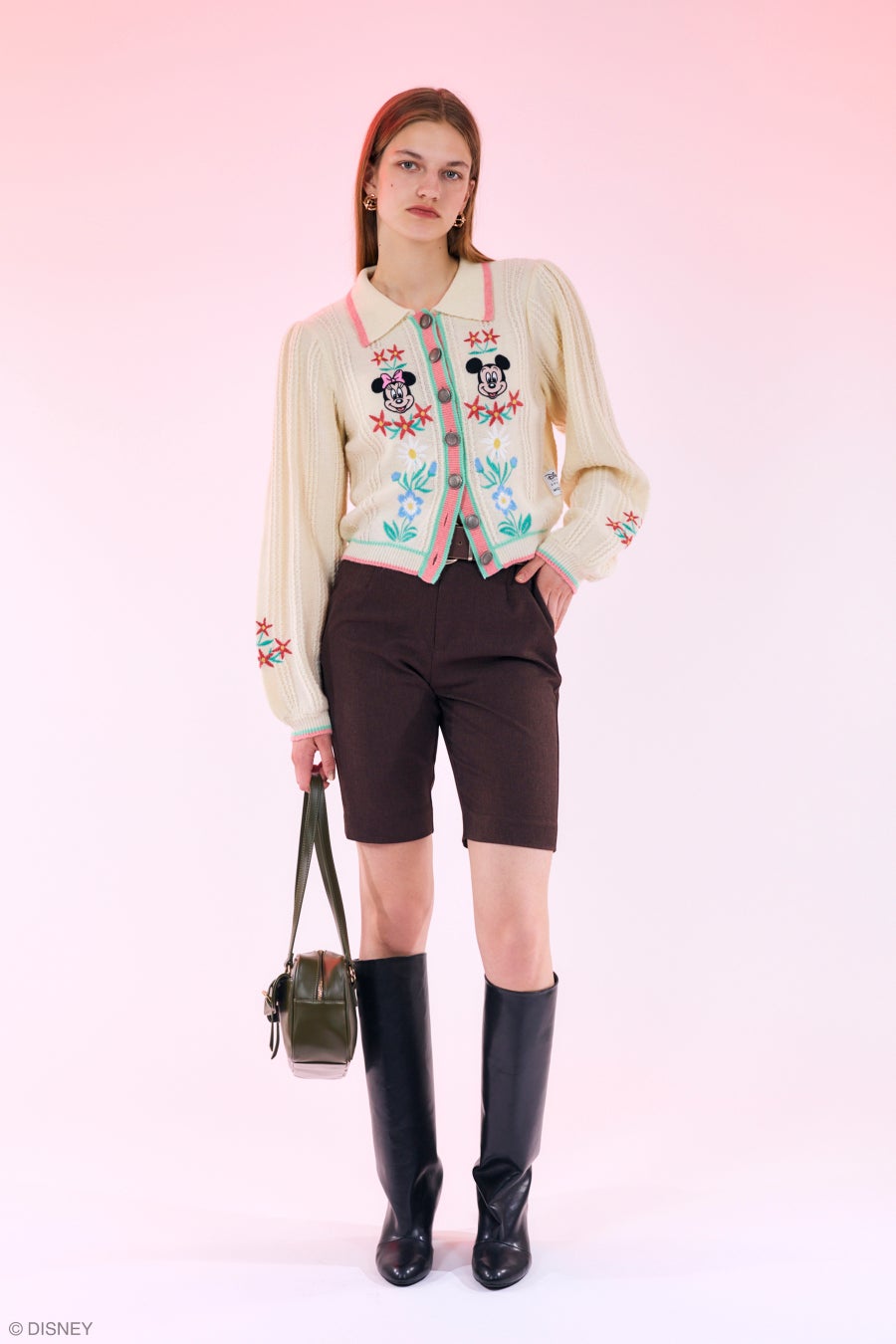 スタンダードキャラクターではMICKEYとMINNIEとお花を全て刺繍で表現したレトロなニットカーディガン、ミツマルモチーフが総柄でプリントされたキャッチーでトレンド感のあるゲームシャツ、ワンポイントのミツマルシリコンワッペンとさりげなくミツマルを編み地で表現した衿付きニットトップスはどんなスタイル・コーディネートにもフィット。レトロな総柄のフリルブラウスやジャカードのニットベスト&ストール、アーカイブアートをヴィンテージテイストに表現したリメイク風のスウェットに全力MINNIE推しなジャカードニットワンピや、1989年に放送されていたアニメシリーズ『チップとデールの大作戦 レスキュー・レンジャーズ』にフォーカスしたスウェットなど、レトロでノスタルジックで個性的アイテムをバリエーション豊かに取り揃え細部にまでアイデアの詰まったデザインが盛りだくさん。