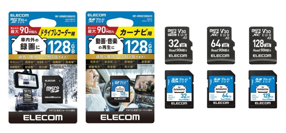 運転時の万が一に備えるドライブレコーダー用と、動画や音楽の再生に最適なカーナビ用の2種類をラインアップしています。