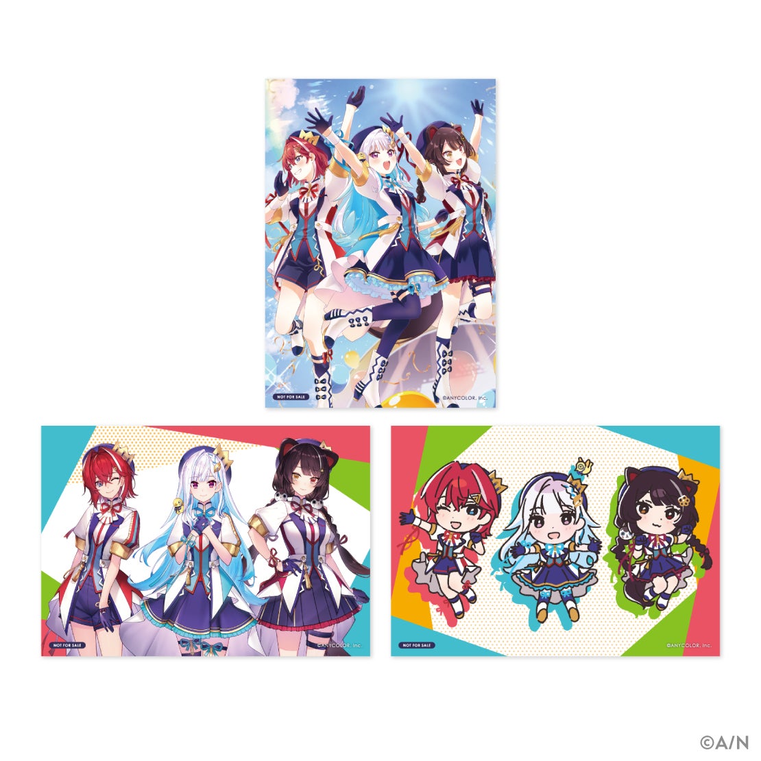 「さんばか 5th Anniversary LIVE 〜3!参!SUN!〜」グッズを、にじストアで購入された方に、お買い上げ3,000円(税込)ごとに「ブロマイド風カード(全3種)」をランダムで1枚プレゼントいたします。