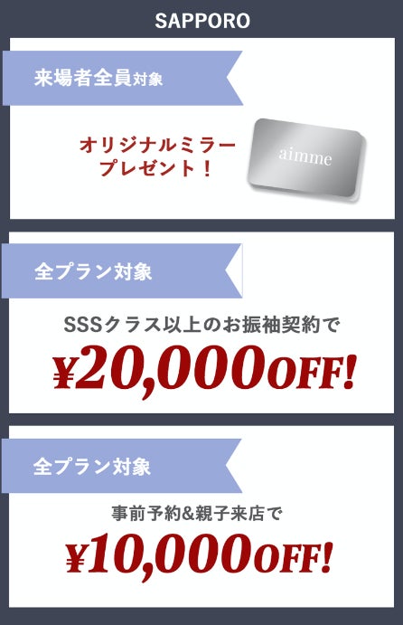 ②SSSクラス以上のお衣装をご契約で2万円オフ