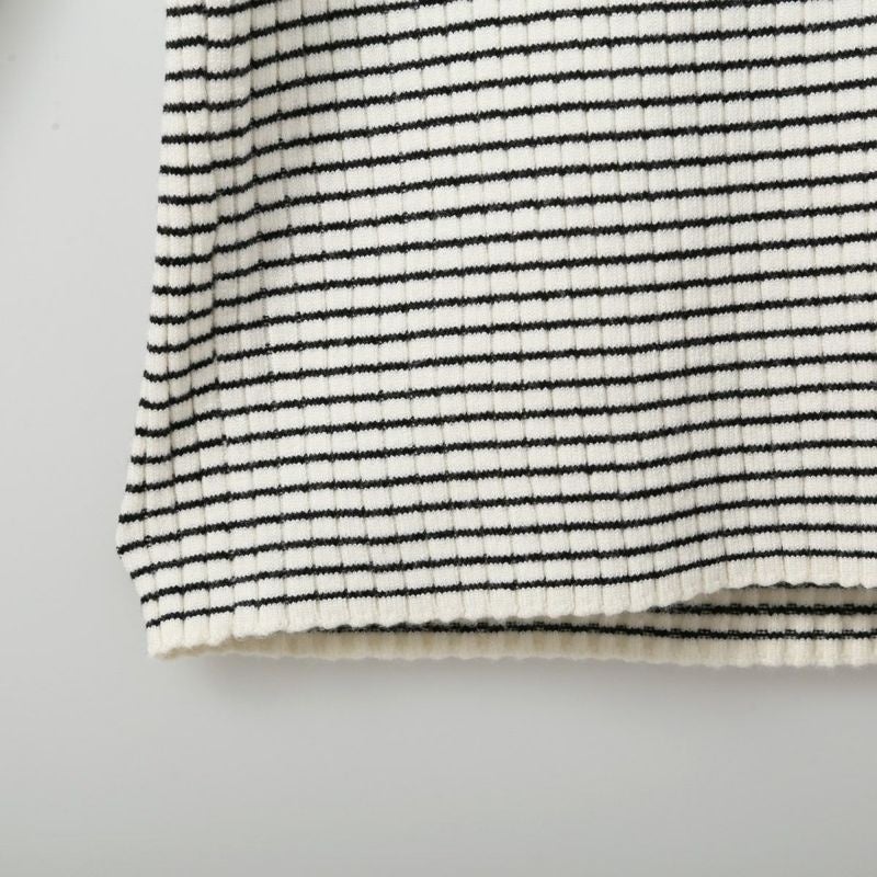 開き過ぎないクルーネックが着やすいデザインのプルオーバー。細かいボーダーと縦のリブ編みを掛け合わせた凹凸のある表面感が高見えします。もちもちした肌ざわりで着心地も良いアイテム。コンパクトなシルエットのため、寒い日の重ね着にもぴったりです。