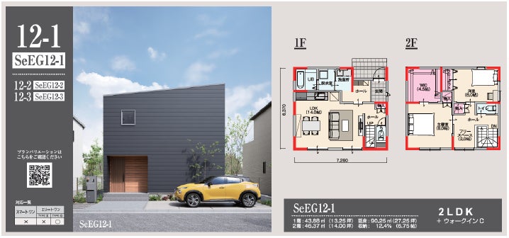 この度追加となる新プラン「EG シリーズ」は、シンプルですっきりとした外観テイストが特徴の 13 種類のデザインをベースに、全 48 プランで構成しています。全プランとも外壁にガルバリウム鋼 板を採り入れ、玄関に面した壁面を異なる材質で貼り分けているほか、屋根は「破風なし納まり」な どこれまでのプランにはなかった外観もラインアップしました。