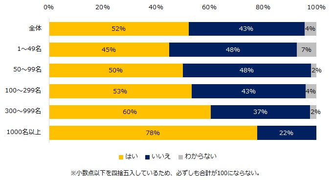 ★ 45%の企業が「以前よりも辞退が増えた」と回答。従業員規模1,000名以上の企業が56%と最多。